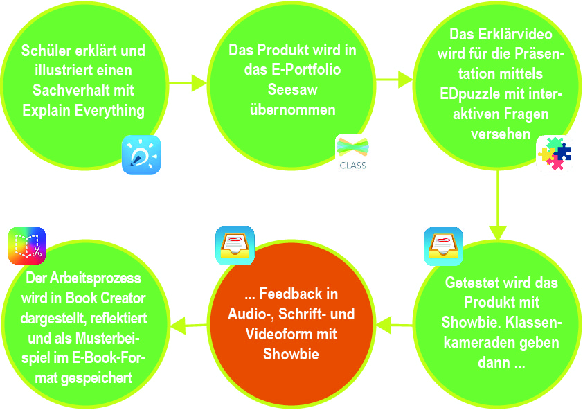 E-Book zu einem Thema erstellen mit Audio, Foto und Video (digital Storytelling). Danach werden sie auf der Schulwebsite veröffentlicht.