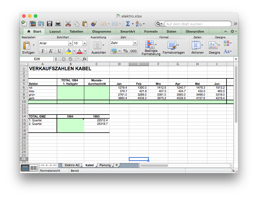 - Ergänze die Blätter Elektro AG und Kabel mit den korrekten Formeln. (Kopiere die Formeln)!