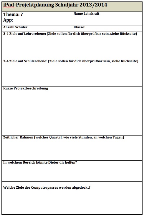 Das iPad ist ein neues Medium, das in dein Schulzimmer Einzug hält. Ich empfehle dir deshalb, den Einsatz besonders gut zu planen. Zu diesem Zweck kannst du dir hier ein Planungsdokument herunterladen.