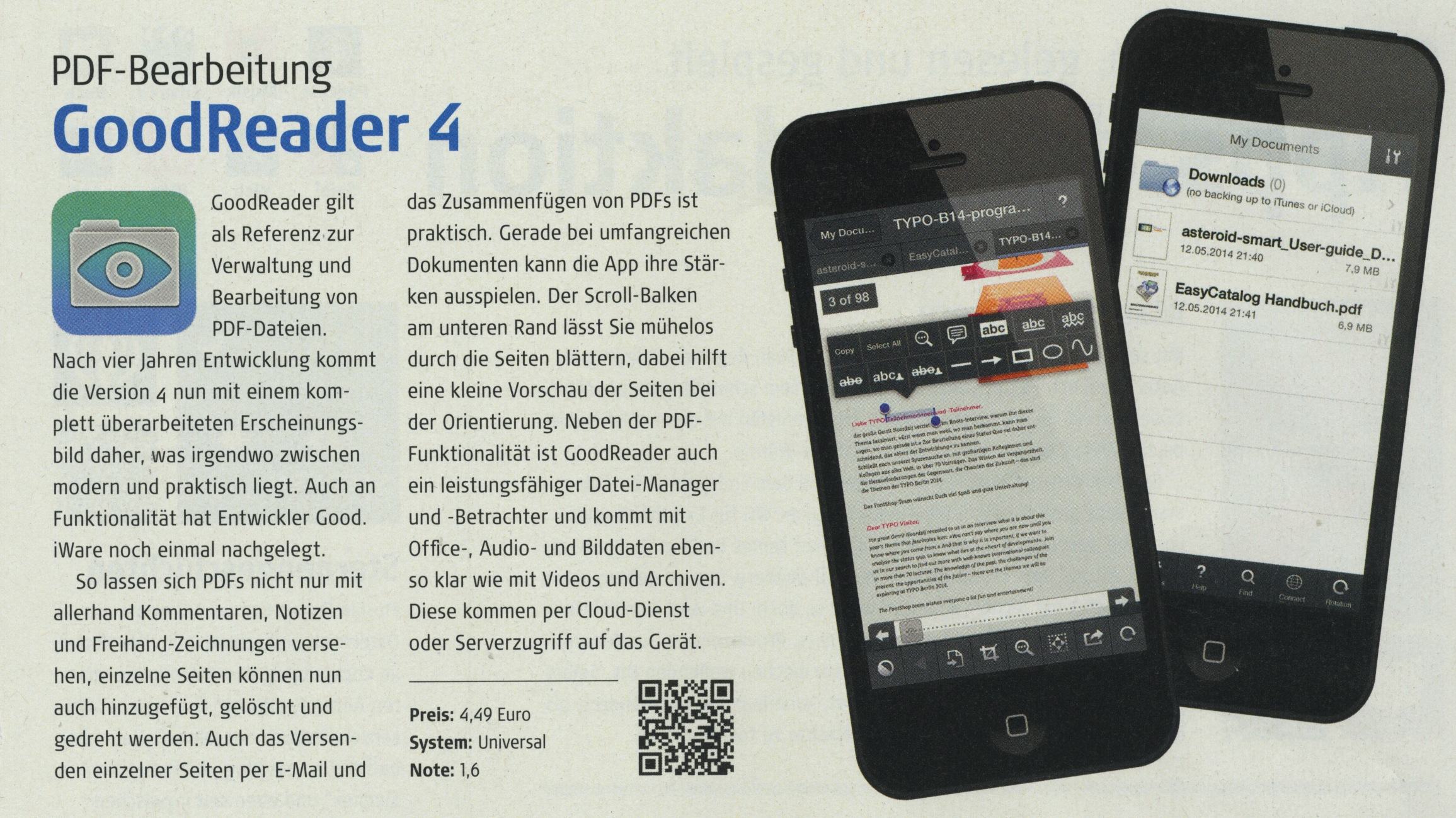 PDFs lesen und beabeiten mit Multifunktionswerkzeug "GoodReader" (5.--)