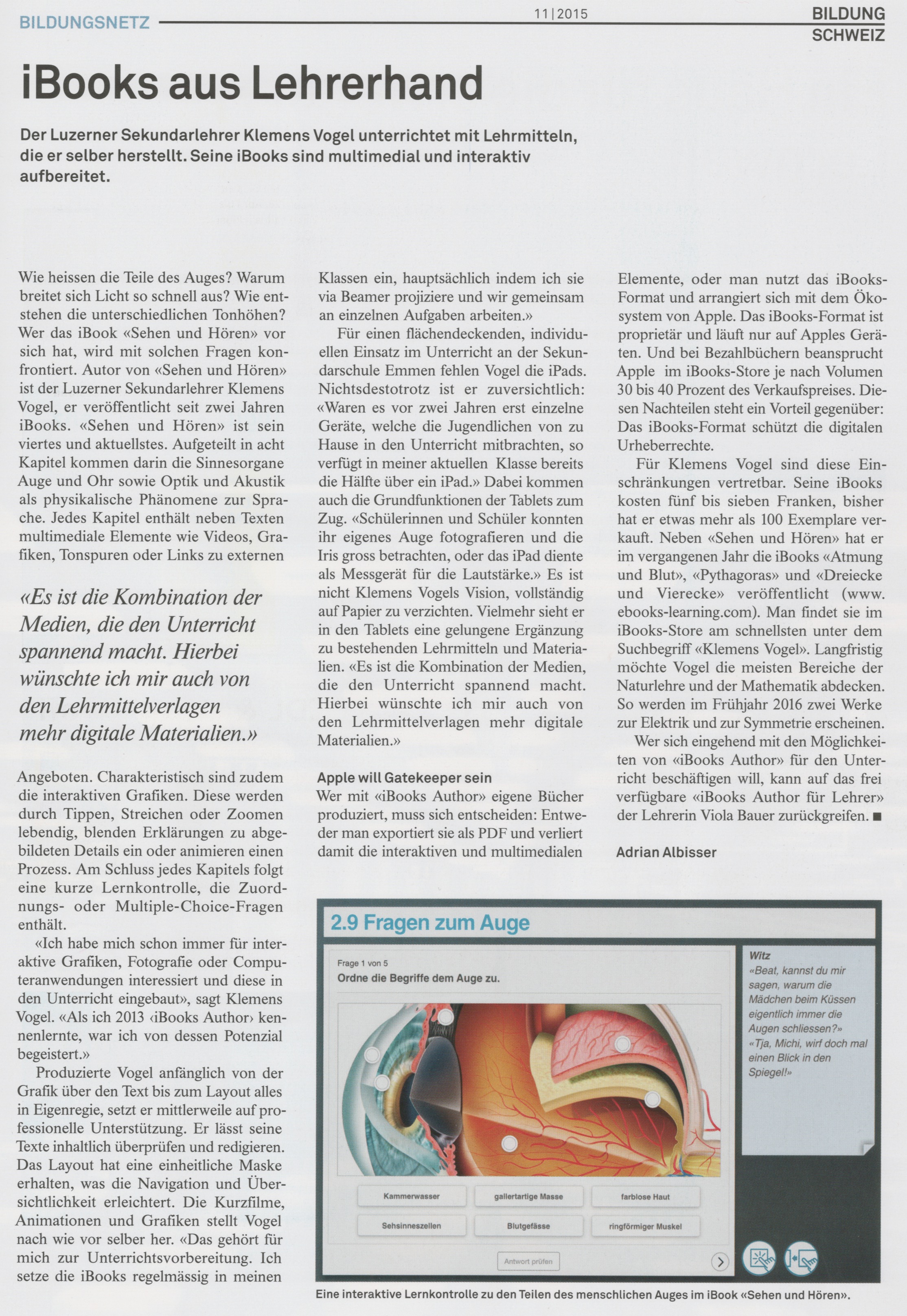 Sehr einfach und intuitiv lässt sich mit dieser App ein Buch erstellen. Neben dem automatisch erzeugten Inhaltsverzeichnis, lassen sich Filme, Bilder, Texte und Tests einbinden. Diese Elemente können interaktiv genutzt werden und bieten einen Mehrwert für den Einsatz im Unterricht. Es ist zum Beispiel möglich, dass ein Schüler einen Film anschaut, um danach die Fragen des Arbeitsauftrags zu beantworten. Ist er bei einer Frage unsicher, kann er für sich nochmals die entsprechende Filmsequenz wiederholt anschauen.