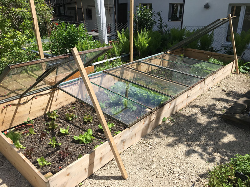 Mit den Glasscheiben der Gärtnerei Haus konnte ich ein Frühbeet realisieren: